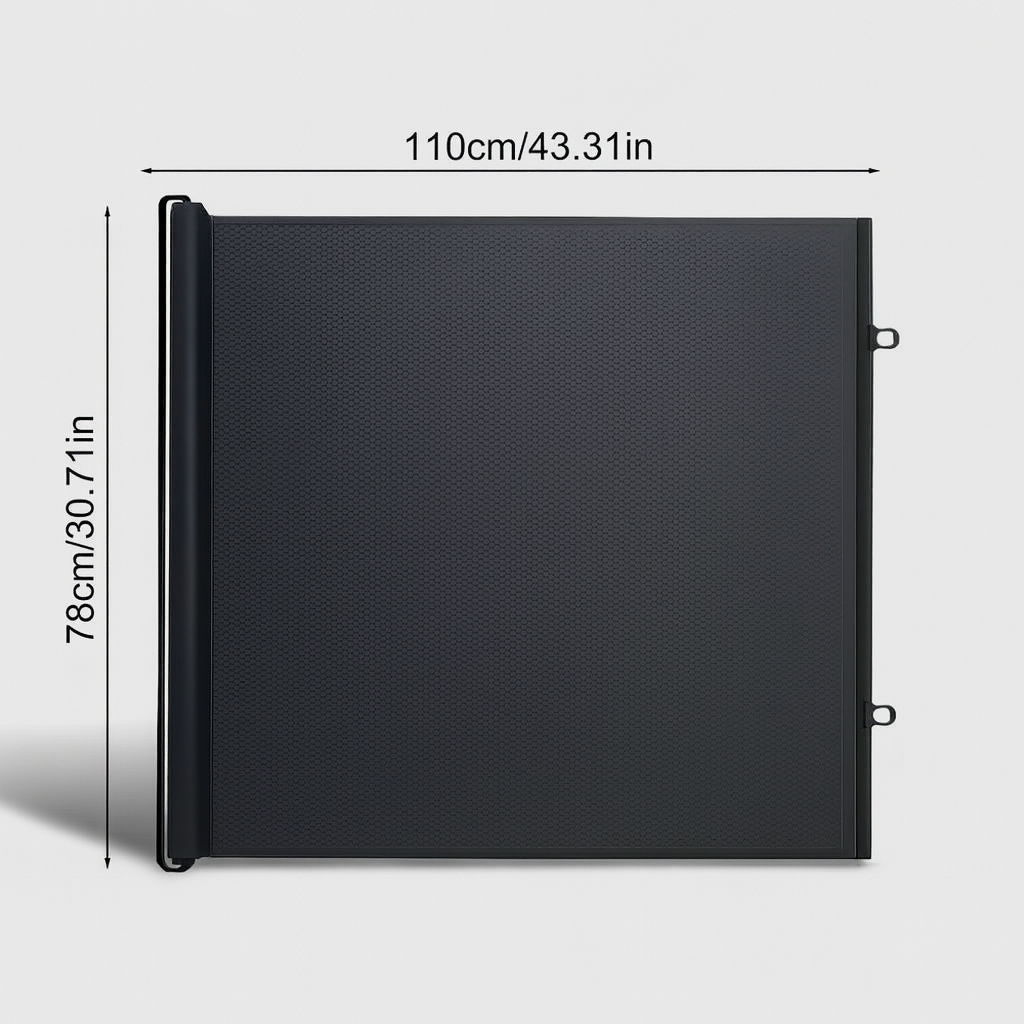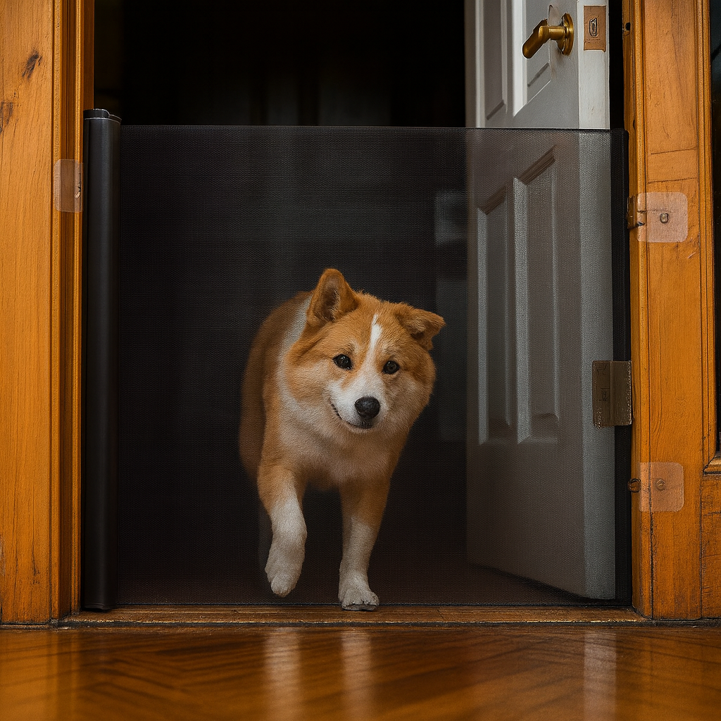 Ensure your home is safe and stylish with this retractable mesh gate, offering a quick and easy way to protect children and pets without drilling or damage.